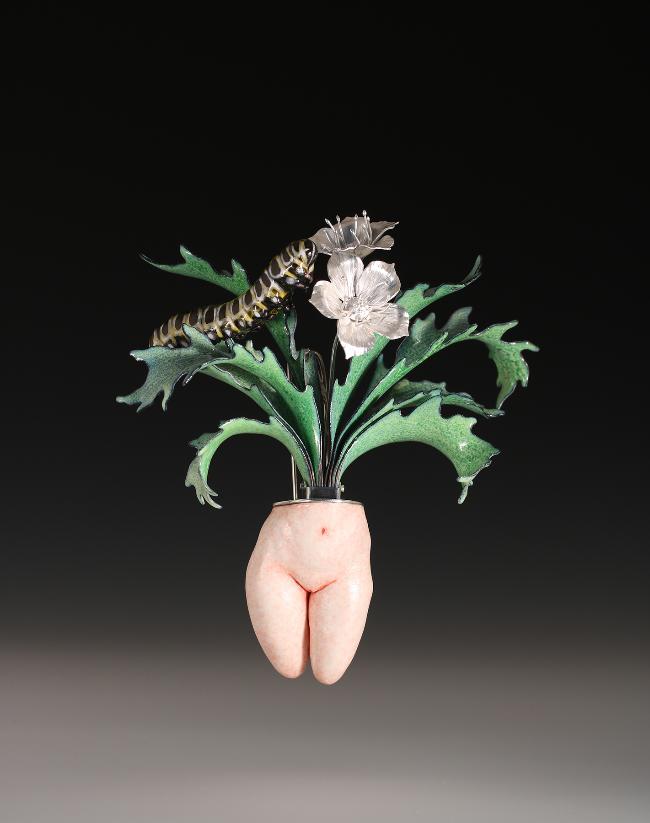 Feed Them Neckpiece. Electroformed copper, silver, enamel. 12”X10.5”X2” 2025